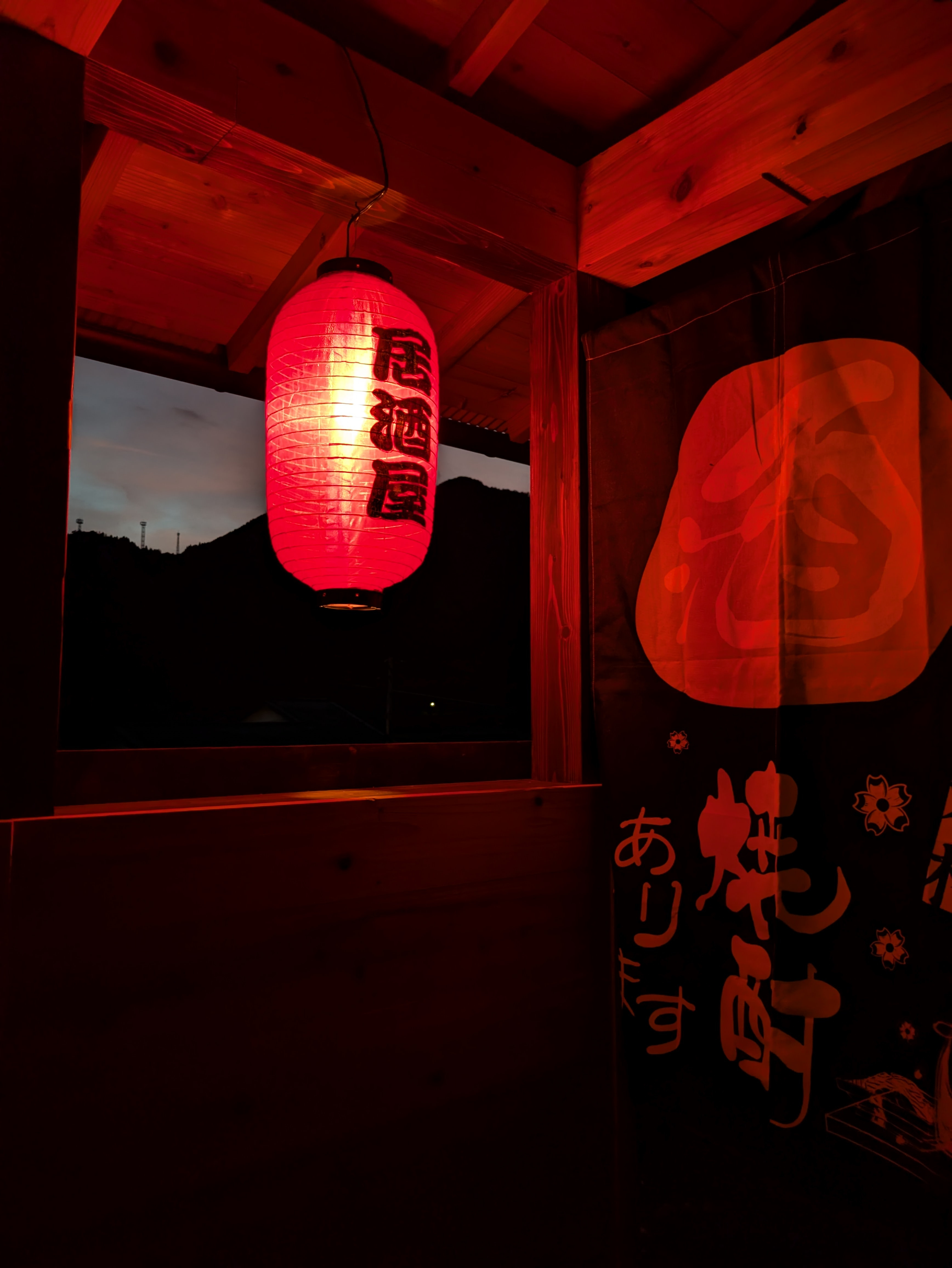 赤提灯に明かりを灯せば、まるで田舎の居酒屋。
