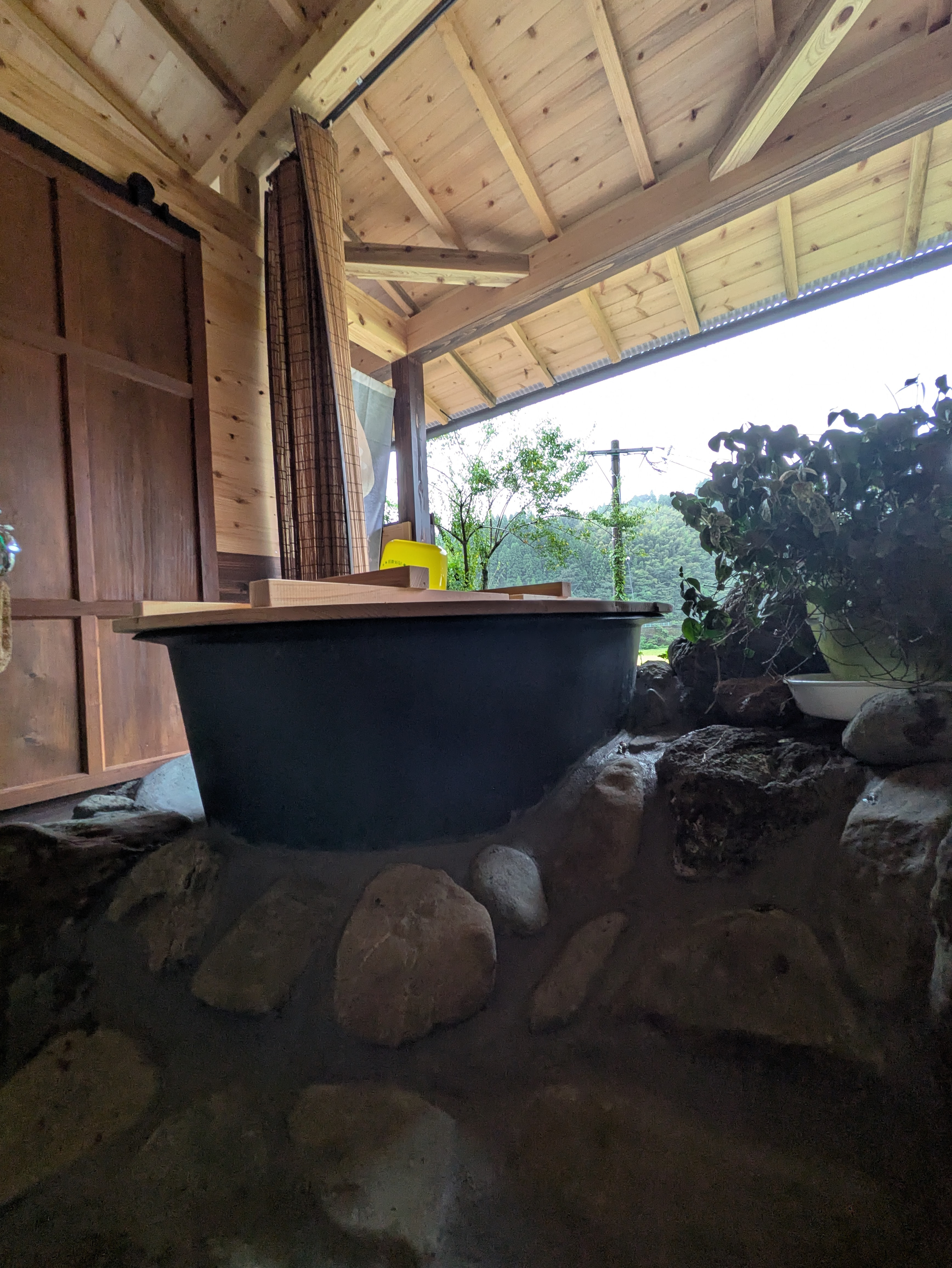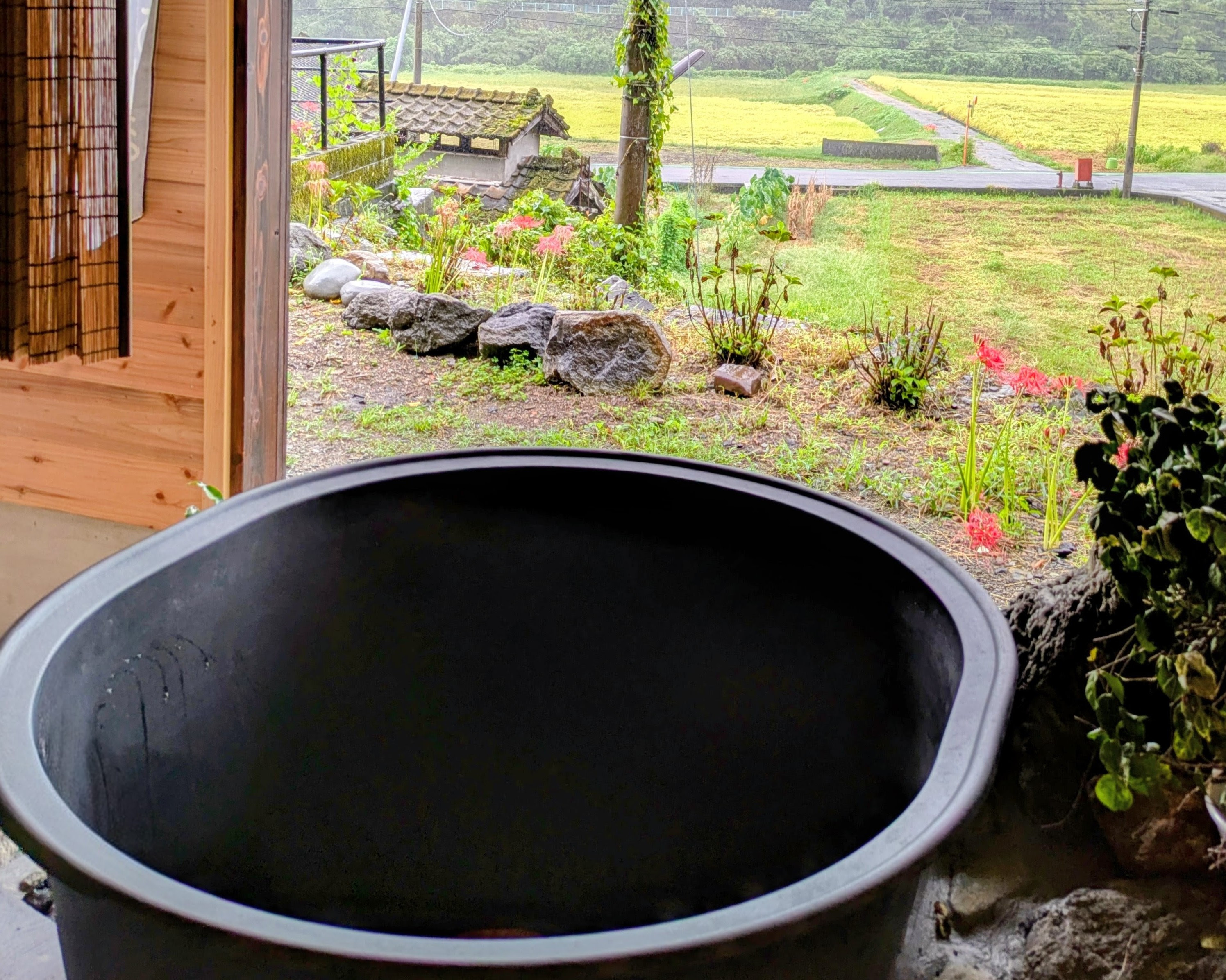 薪に火をくべてお湯を沸かし、湯船に浸かりながら田園の風景を眺める時間は格別です。