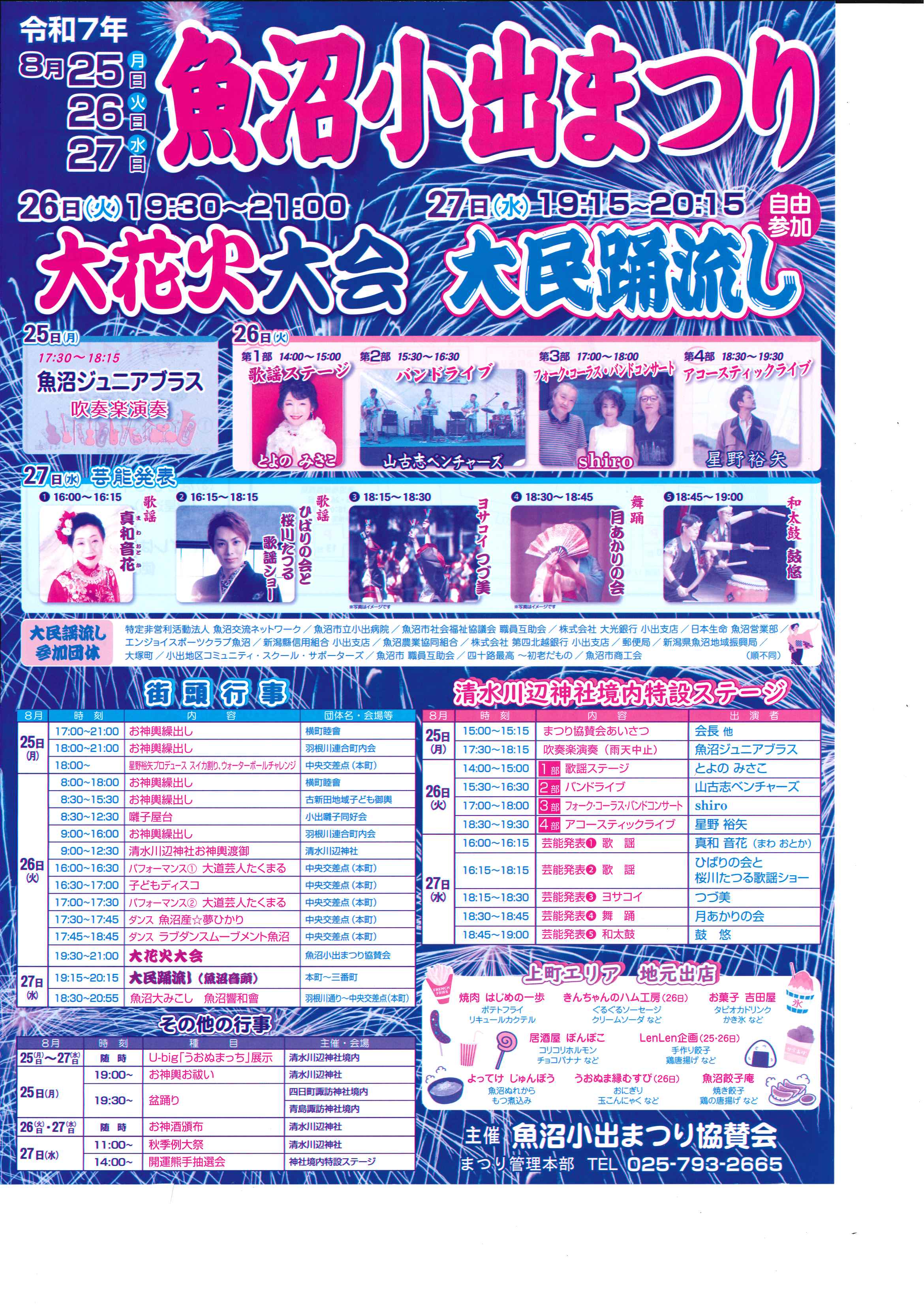 ※「魚沼小出まつり行事予定」は本日現在の予定となっております。変更の可能性もございますのでご了解ください。