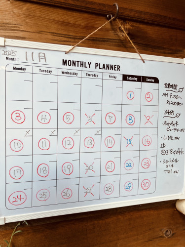 [癒し処 雨猫] 11月の営業日です!12月20日〜冬期休業