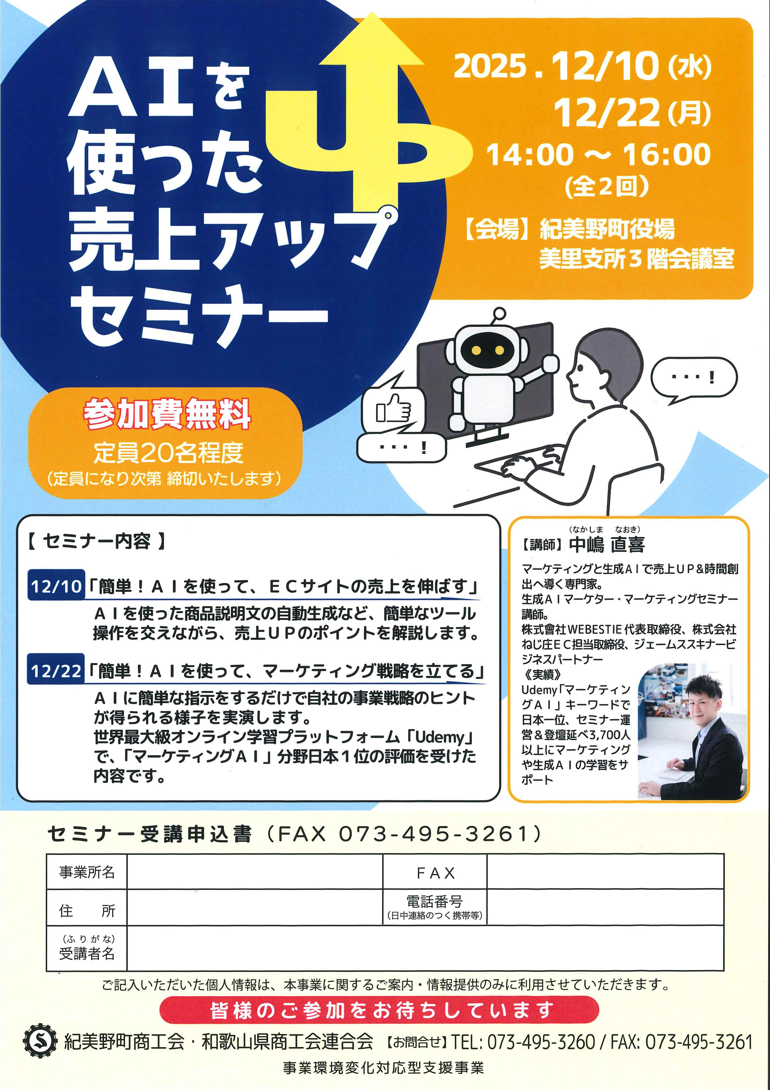 [紀美野町商工会] 「AIを使った売上アップセミナー」開催のお知らせ