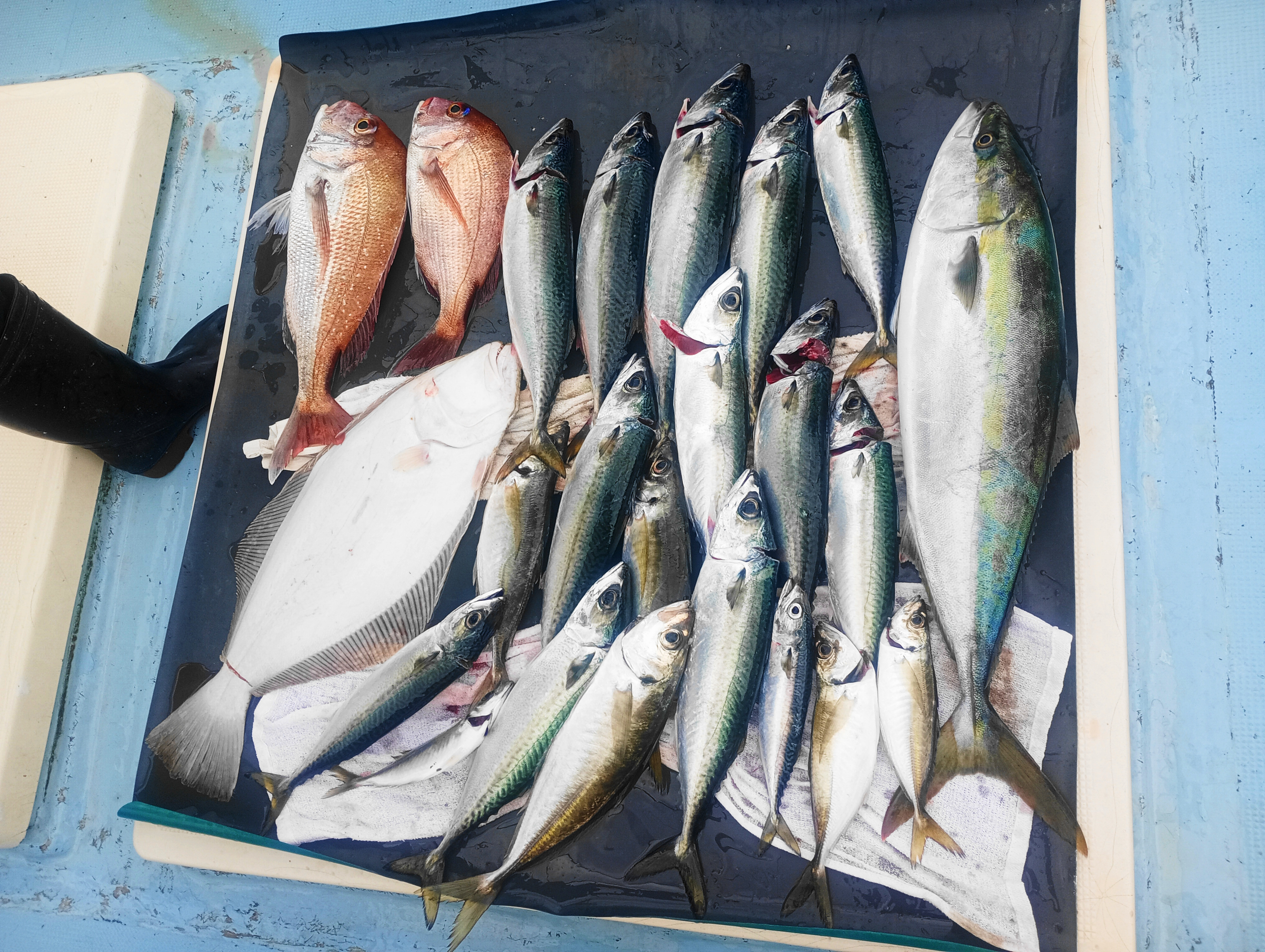 加太で釣った良型ヒラメにメジロ。