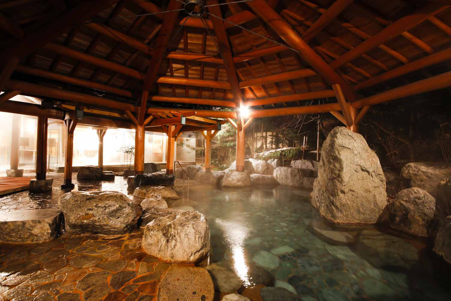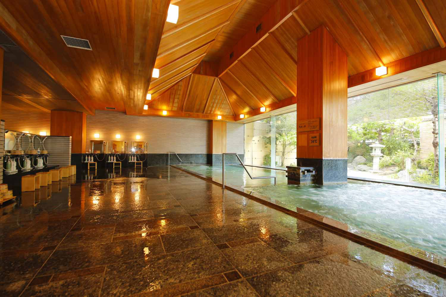 ホテルの敷地より湧き出る『自家源泉を堪能できる大浴場』は、いろいろな種類があり四季折々の景色を眺めながら入浴できます。