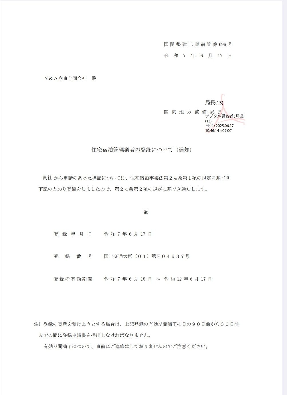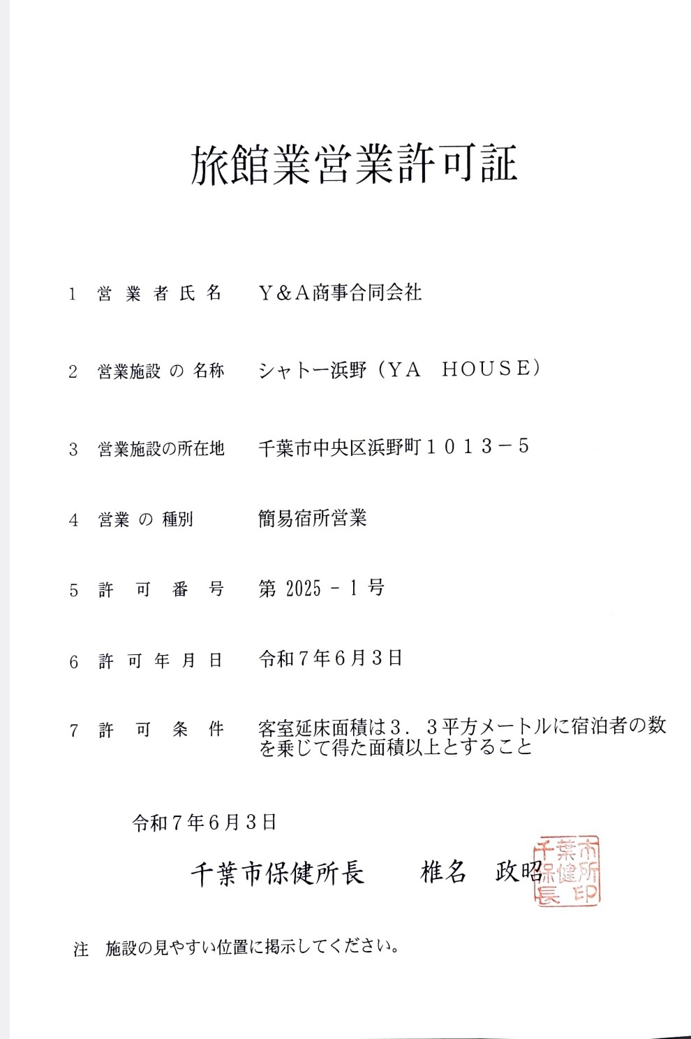 弊社民泊施設が旅館業となります。 -