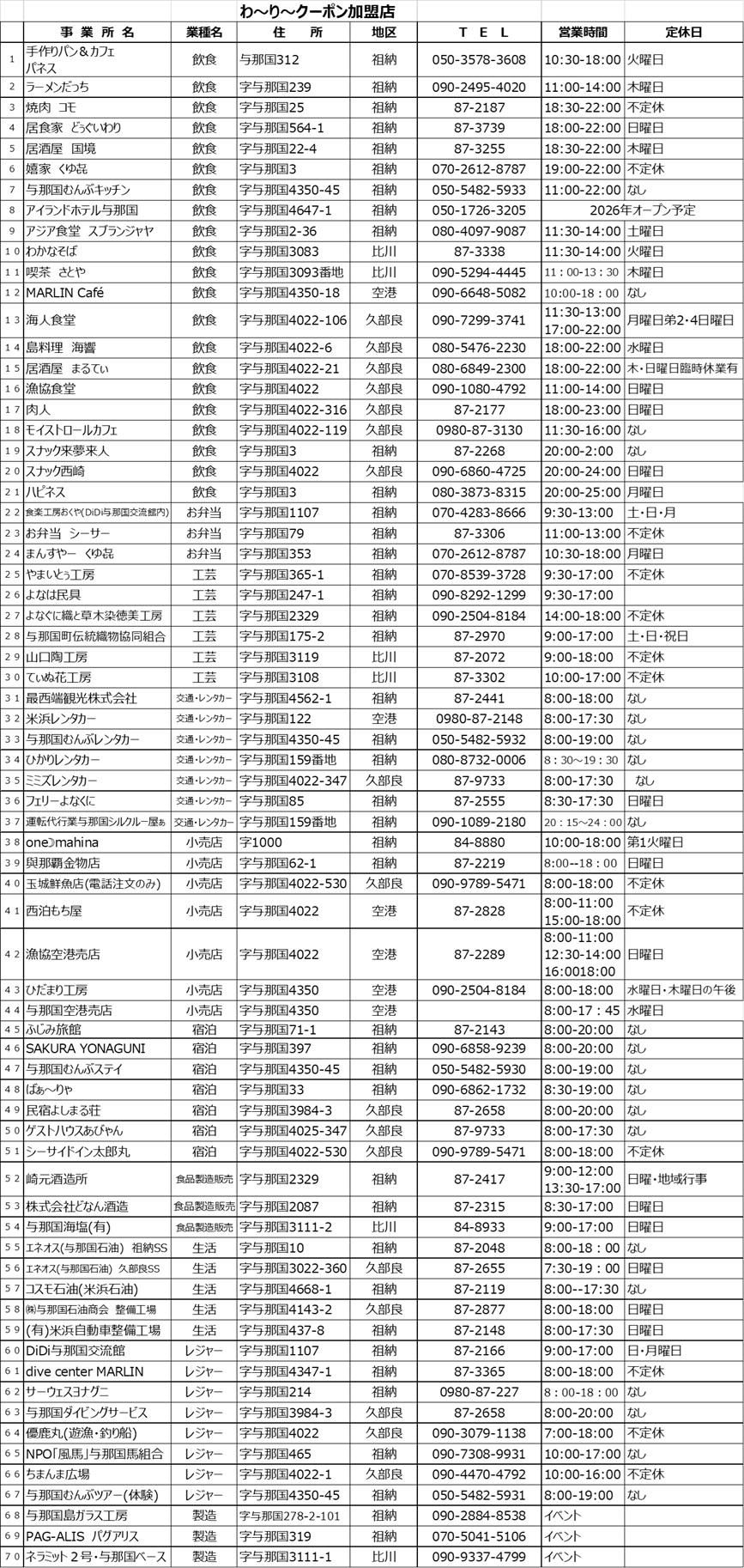 お問い合わせ 与那国町商工会 0980-87-2944