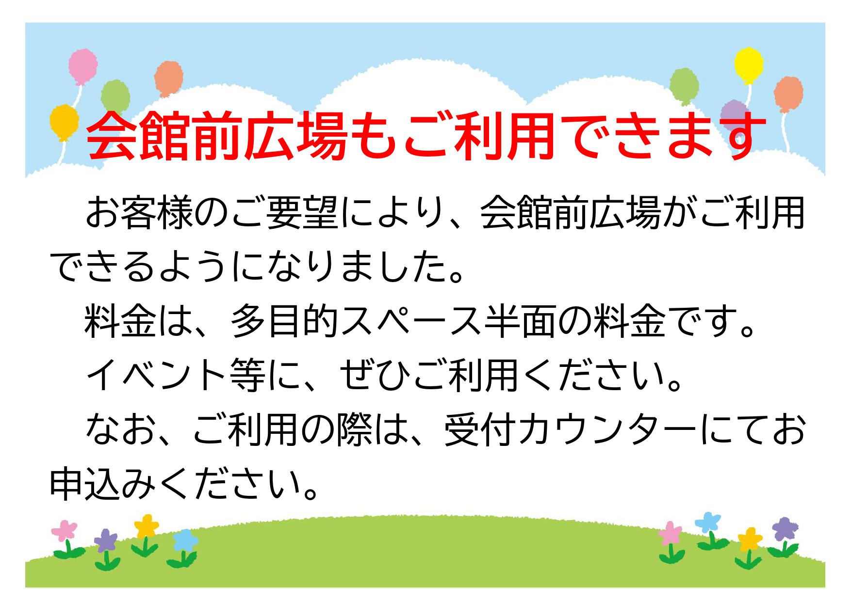お客様のご要望により、ヨリドコロ前広場がご利用できるようになりました。