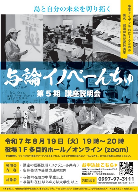 与論イノベーちゅ第5期講座説明会開催及び参加者募集