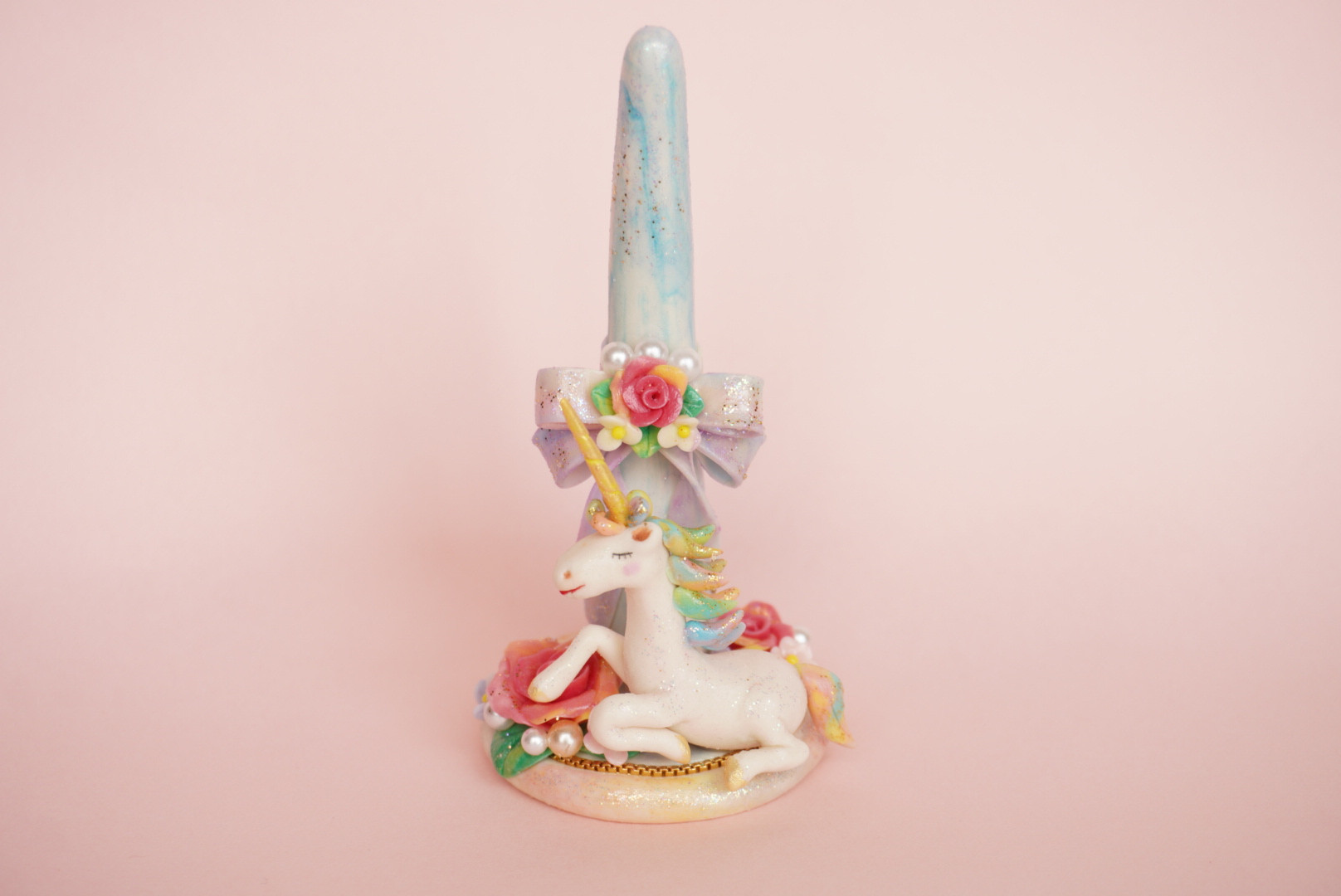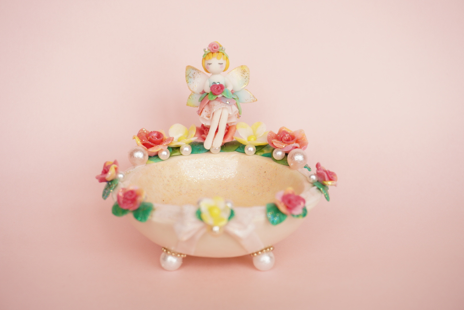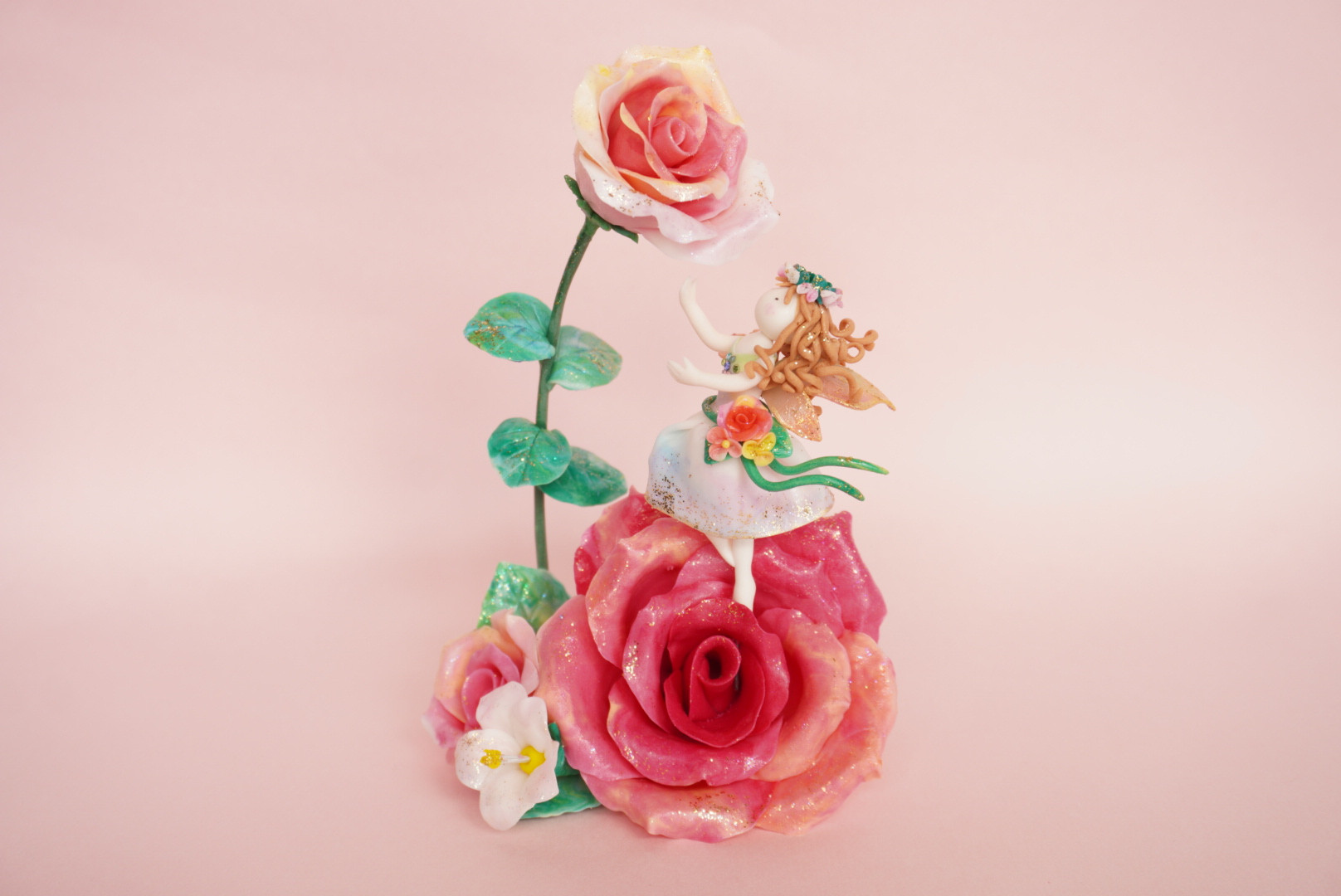 神様と仏様の人形は、陶芸粘土で制作。ペガサスやお姫さまのメルヘンドールと小物たちは、樹脂粘土とオリジナル粘土で制作しています。