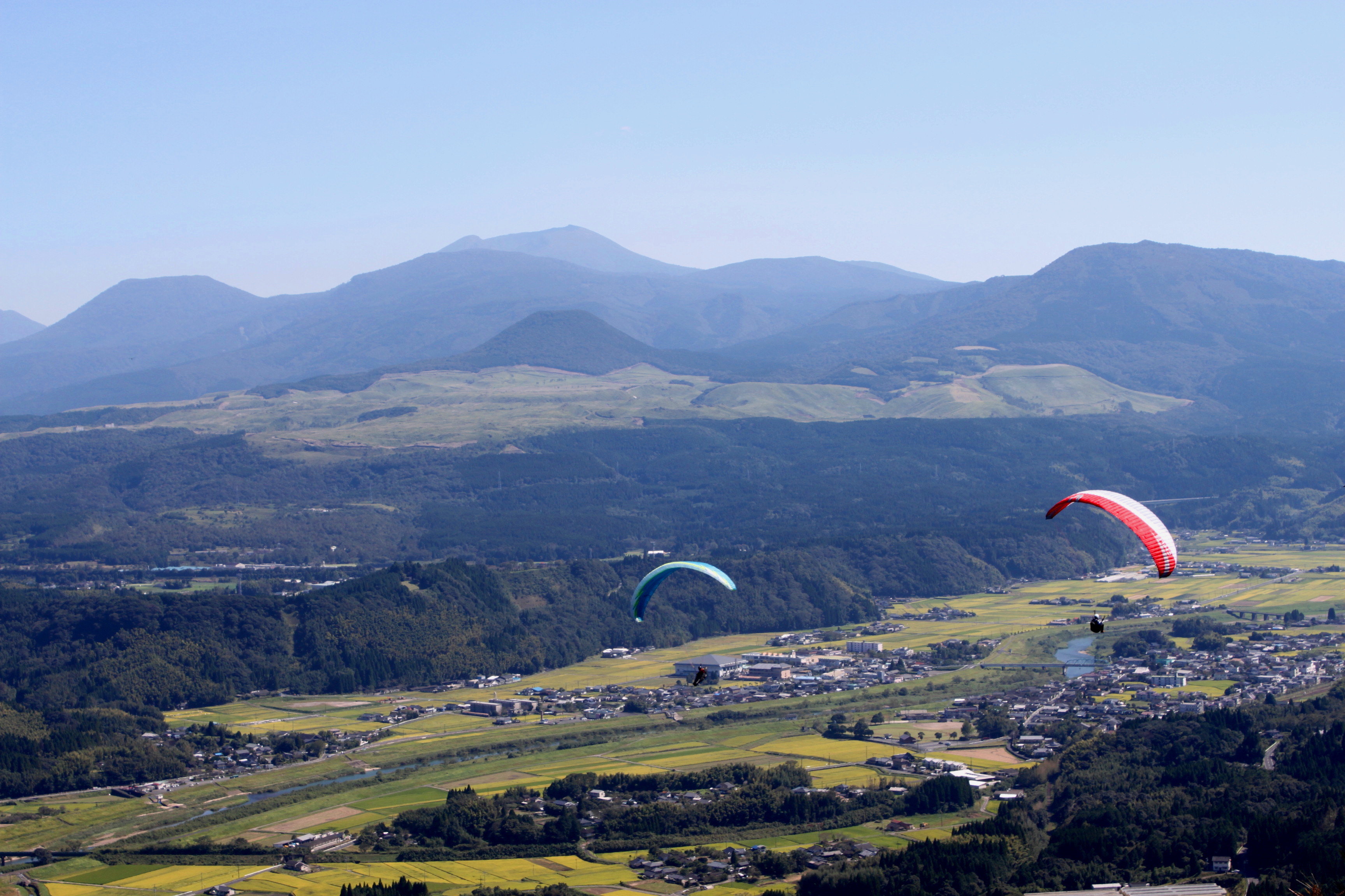 霧島連山をバックに飛んでいます